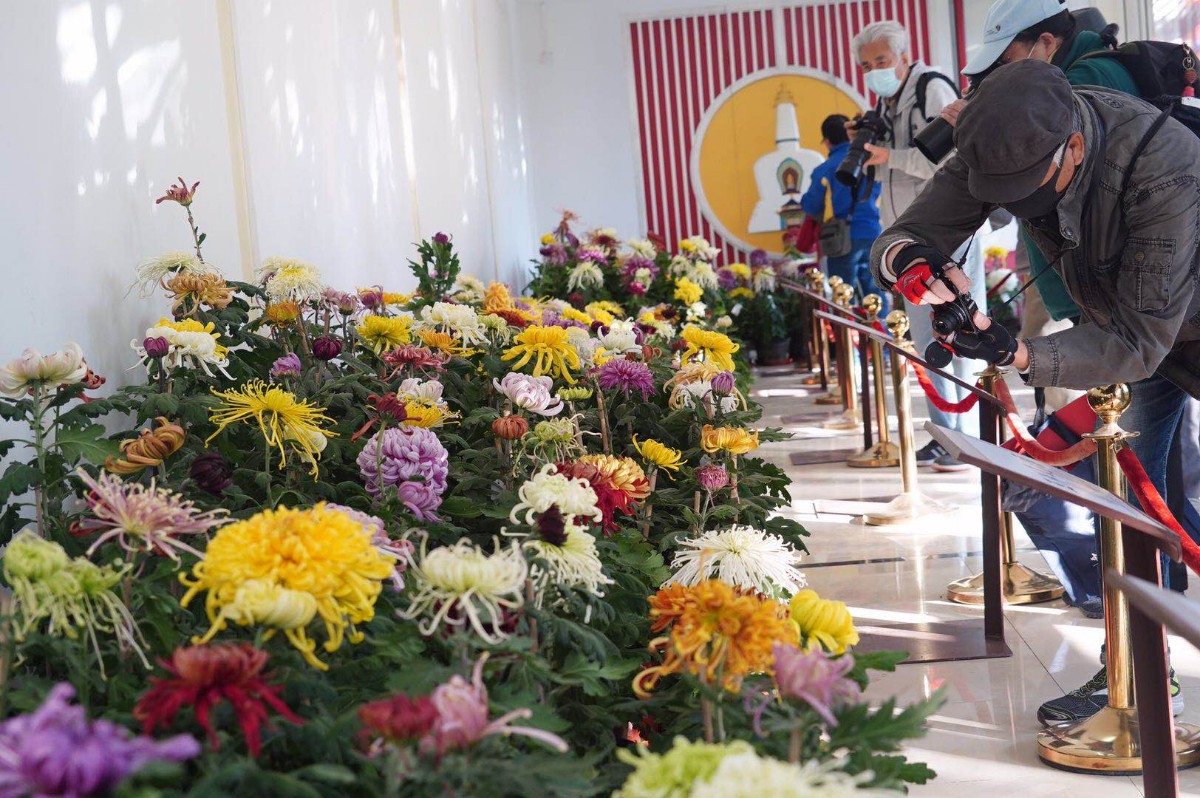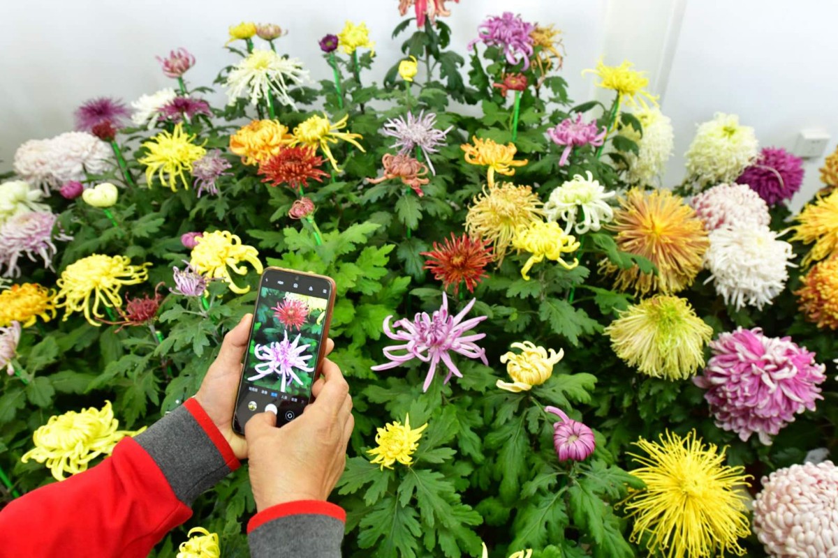 钱君表示,本次菊花展基本覆盖北方菊花展示形式,共展出标本菊近500个品种1500株,小菊盆景80盆,造型菊4盆,附桩盆景6个,嫁接什锦菊树4株,精品多头菊150盆、悬崖菊30盆,案头菊14盆,以菊花为主花材的插花作品12件。展览还配花3000余盆。