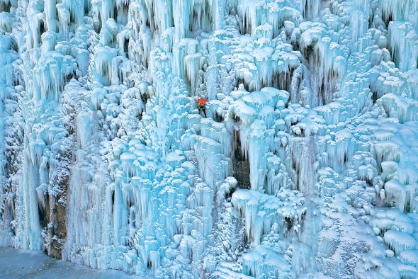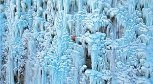 嶙峋万仞间,房山区霞云岭的金水湖冰瀑一派冰魂雪域,游客在金水湖畔放眼看去,湖畔一侧大片的悬崖峭壁之上,冰泻如瀑,阳光投射其上,光芒四射,银装素裹,引来无数游客一片惊叹声。(樊甲山 摄)