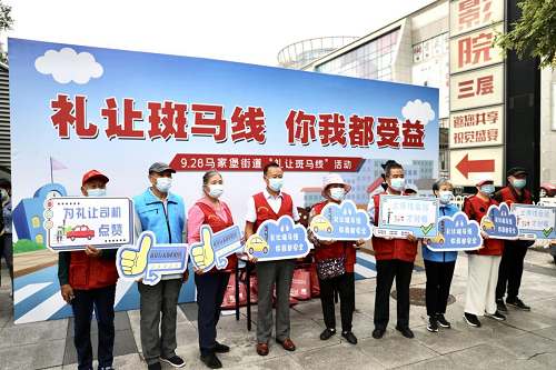 马家堡街道党工委书记王涛表示:“今天‘礼让斑马线’的活动意义就在于让马路参与者都成为受益者,司机的一脚刹车,行人对其点赞回应,就能换来安全,也能带来一天的好心情,更可以成为一种新风尚。”