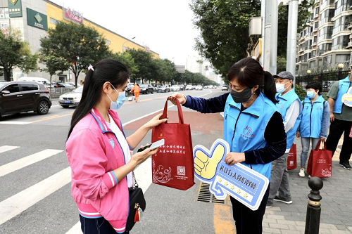 为了推行止停线前站定这一等灯好习惯,丰台马家堡街道为耐心等候的行人准备了用无纺布袋装着创城宣传品、活页本、扇子、便携手提袋等“文明出行”小礼包。不仅如此,在行人等候红绿灯的间隙,在场的“礼让斑马线”宣传小分队还推行一种礼让手势语,倡导大家伸出右手大拇指,为文明礼让的司机点个赞。不少司机看到行人的点赞,都短鸣笛或挥手致意,如此举动,让双方都觉得安心又暖心。