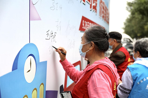 不少行人在活动现场签下自己的名字,承诺文明出行并带动身边的人