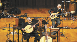 “桃花韵”爵士音乐会则是另一种风格:阮与爵士乐队合作的《冬》,在冯满天吟咏的“明月照积雪,朔风劲且哀”等诗句中宕开壮阔胸襟;古筝与爵士乐队演绎的《秋雨》,宁谧连绵而不乏凛冽萧瑟;《西域狂想曲》以雄浑的鼓声开篇,萨克斯与笛子对话,肆意尽兴;冯满天与青年戏曲演员李林晓合作的《牡丹亭随想》格外深邃幽远……“每首作品都很有记忆点。”乔女士说,“从前我真没想过民族音乐能和爵士乐融合得这么巧妙,这场音乐会刷新了我的很多认知。”