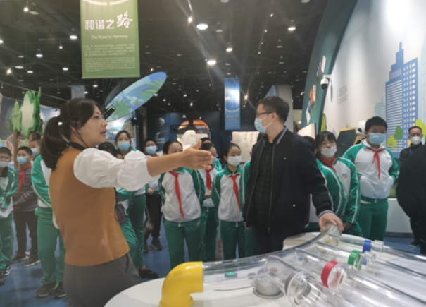 科学教师马佳旺在北京科学中心带领学生一起上科普课《从垃圾说起--资源的回收和利用》
