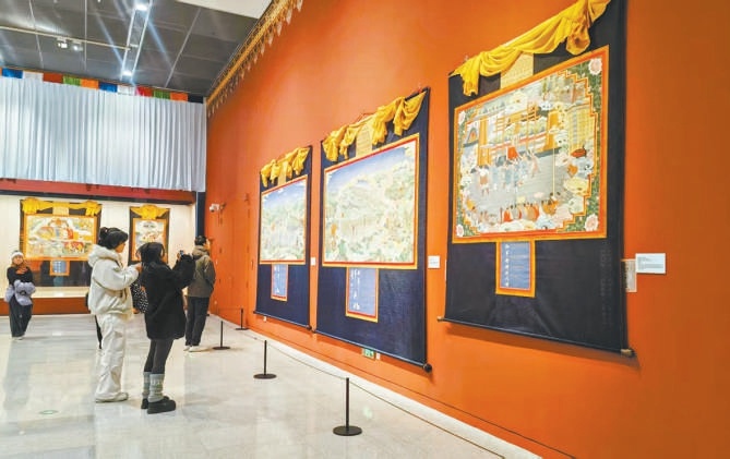 新年到来,在中国非物质文化遗产馆亮相的“镌刻在唐卡中的红色记忆——郎卡杰唐卡创新艺术展”吸引了众多观众。来自雪域炉霍的丹青画卷,将旦都喀的冰雪、卡萨湖的澄澈与鲜水河的奔流凝于笔端,更把长征史诗、抗震壮歌与各族人民团结奋进、共建美好家园的时代篇章深情镌刻,引来无数驻足与赞叹。