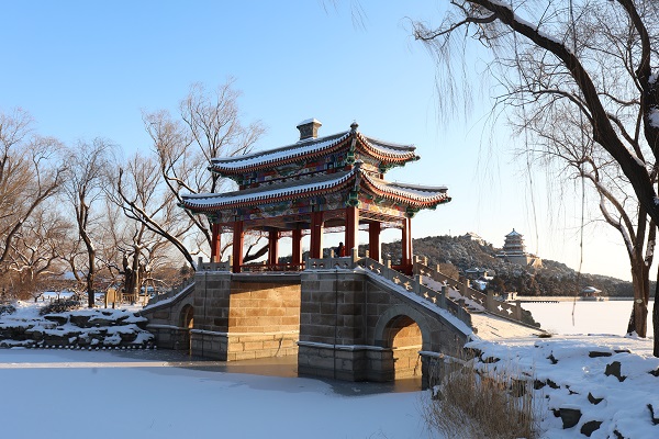 为保障游客赏雪游园安全,各市属公园及中国园林博物馆全员上岗,已将门区、主要干道积雪清理完毕,仍在持续进行景区支路、小道的扫雪铲冰工作。市公园管理中心提示游客:雪后消融时道路比较湿滑,赏雪观景一定要注意脚下安全,遇部分狭小路段、游览辅路或临时封闭景区要听从工作人员指引或牌示提示。