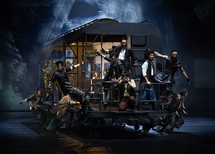 为了生存,更为了胜利,刘洪带领兄弟们袭击了当地的日本洋行,夺取枪支、武装自己。在充满紧张感与冲突的戏剧化场景中,舞者如影子般娴熟地穿梭于日式建筑间,精妙的舞蹈编排、紧张的音乐节奏和富有悬念的舞台调度,将偷袭洋行的紧张刺激展现得淋漓尽致。而智打票车的舞段,则更加展现出革命英雄们的智慧与英勇,他们在铁轨间穿梭,利用车厢作为掩体,在方寸之地与敌人搏斗,主创团队巧妙运用投影与道具的变化,配合舞者一系列高难度的技术技巧,将舞蹈的每个精彩瞬间都渲染得动魄惊心。