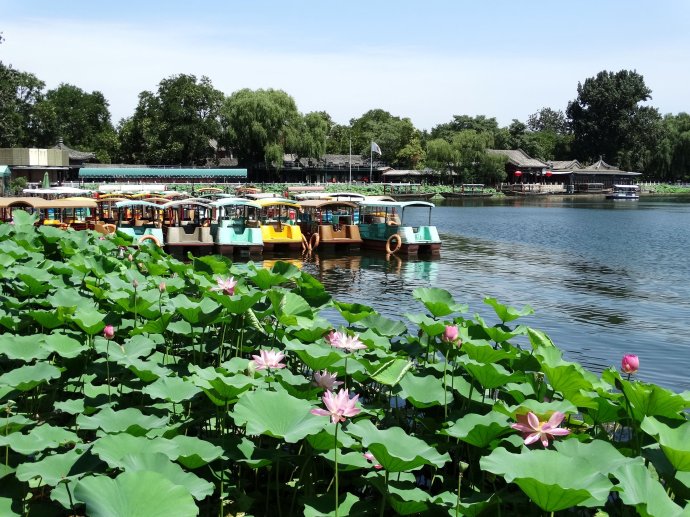 都人游踪,多集于什刹海,以其去市最近,故裙屐争趋。长夏夕阳,火伞初敛。柳阴水曲,团扇风前。几席纵横,茶瓜狼藉。玻璃十顷,卷卷溶溶。菡菡一枝,飘香冉冉。