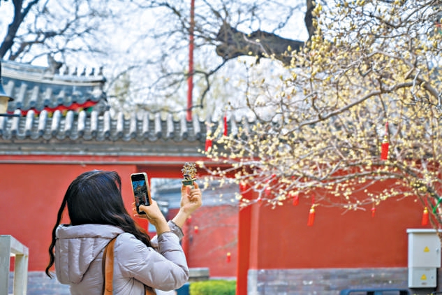 万寿寺中路院内,玉兰花苞爬上枝头。9时许,游客三五成群进馆,大多直奔玉兰树下,举起手机、相机,寻找春光最佳拍摄角度。“经常刷到有人说这里是北京春天的‘顶流’打卡地,我特意约了朋友赶早来。”市民陈女士笑着说,“虽然玉兰还没盛放,但我们拍得也很尽兴,过几天再来。”