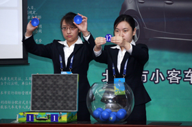 请工作人员从抽签箱中逐一抽取6个塑料球,球中的号码对应的座位号为选中的摇号人。