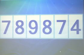 请第六位先生到计算机前,点击键盘摇出第六个数字。好,第六个数字是4。请您回6号座位就坐。