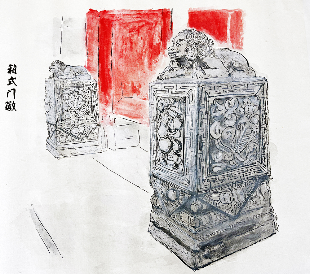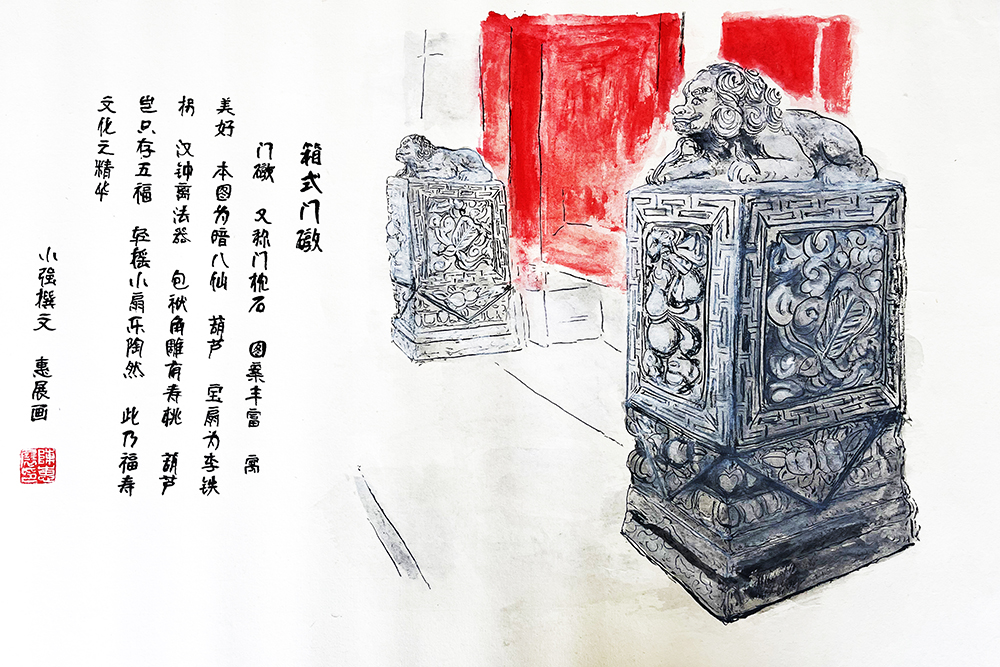 祖辈居住生活在胡同里的老北京人,对门墩却情有独钟。门墩作为显示门第、表达主人喜好、装饰门面的物件。明清时期是北京门墩的繁盛期。门墩是门枕石的一部分,门内部分是承托大门的,门外部分平衡门板的重量,这就是我们所说的门墩。从门墩的大小也可分出门第的高低。门墩的形状有圆鼓、方鼓、异形鼓三种形式,前门一带方鼓居多。一般文官的宅院用方形鼓,武官的宅院用圆形鼓。门墩是历史阶段的产物,门墩的造型纹饰也是一种雕刻艺术品,更是民俗文化重要体现。(作者:陈惠展)