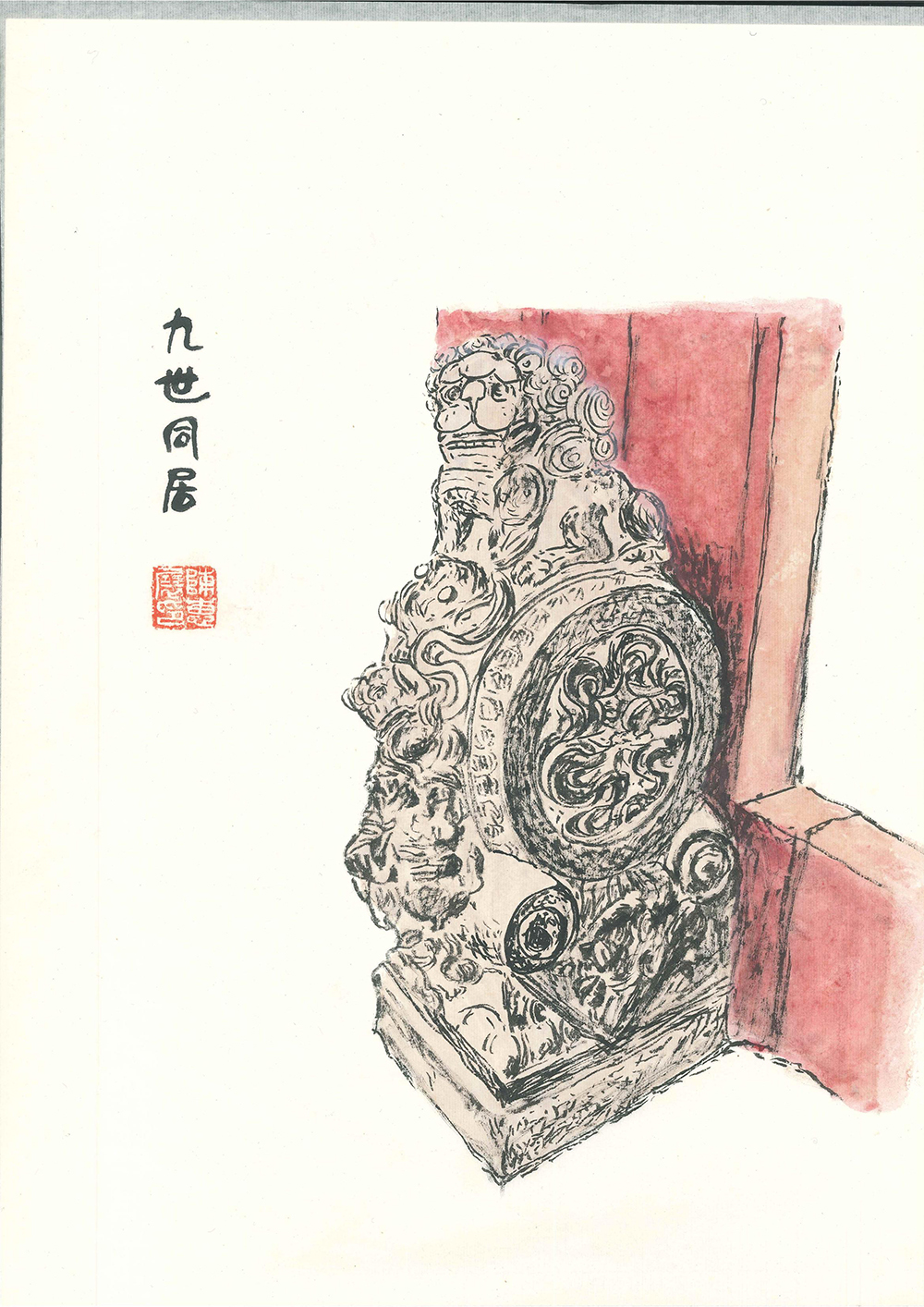 九狮(世)同居:门礅上刻有九只狮子,象征世代富贵。一般刻有九只狮子的门礅都是门礅中的上品,多为镂刻,且大小狮子逼真传神。(作者:陈惠展)