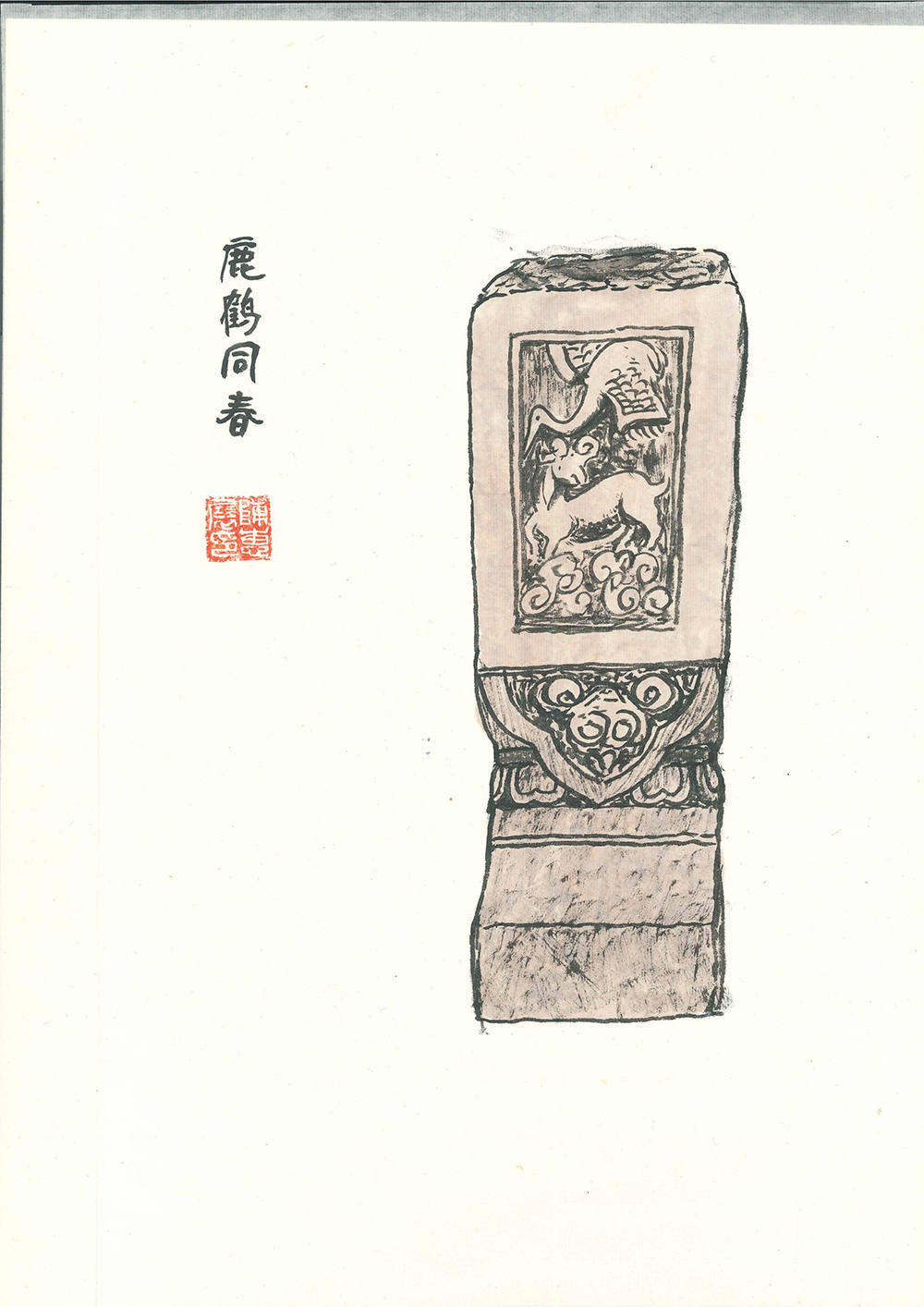 鹿鹤同春(六合同春):寓意富贵长寿之意,民间语言习俗,东、西、南、北、与天地合起来称为六合。泛指天下,表示六合同春的含义。(作者:陈惠展)