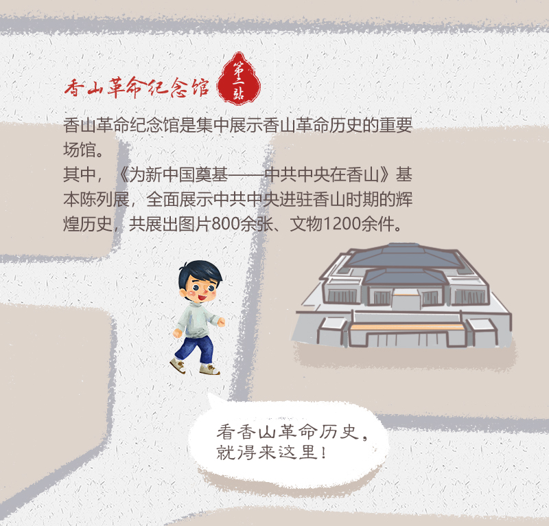 其中,《为新中国奠基——中共中央在香山》基本陈列展,全面展示中共中央进驻香山时期的辉煌历史,共展出图片800余张、文物1200余件。