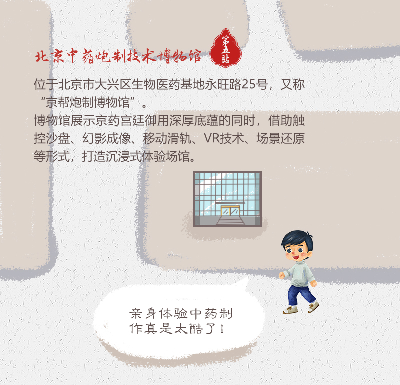 北京中药炮制技术博物馆博物馆围绕 “历史追溯”、“技术传承”、“京帮集粹”和“国药图鉴”四个主题生动地展示了京药宫廷御用、修事精益、安全有效的深厚底蕴。
