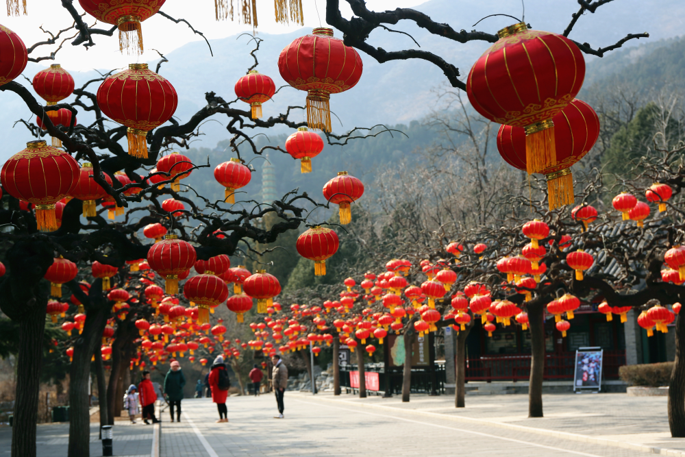 香山公园。用红色来装扮过年,承载着对新的一年万事如意的祝福。