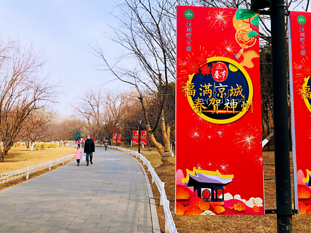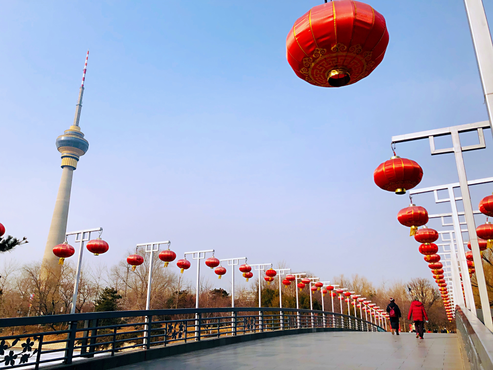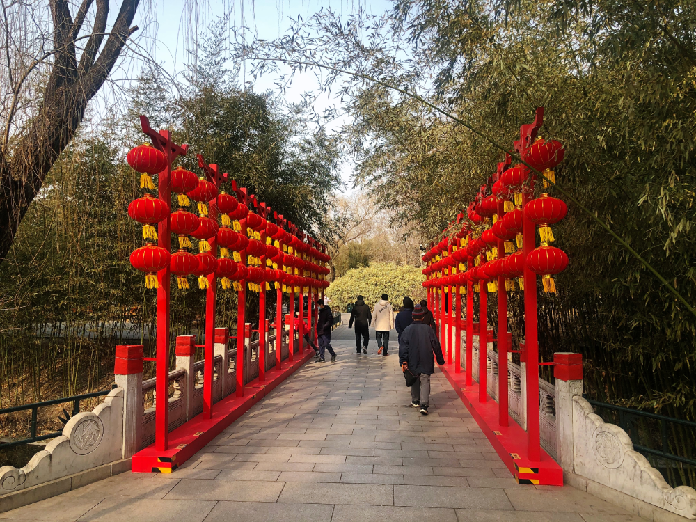 玉渊潭公园。用红色来装扮过年,承载着对新的一年万事如意的祝福。