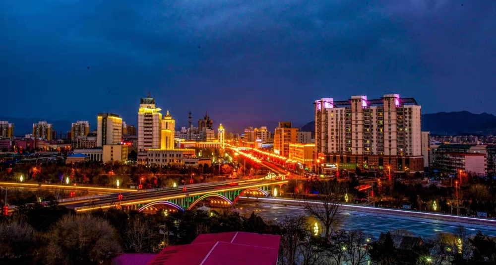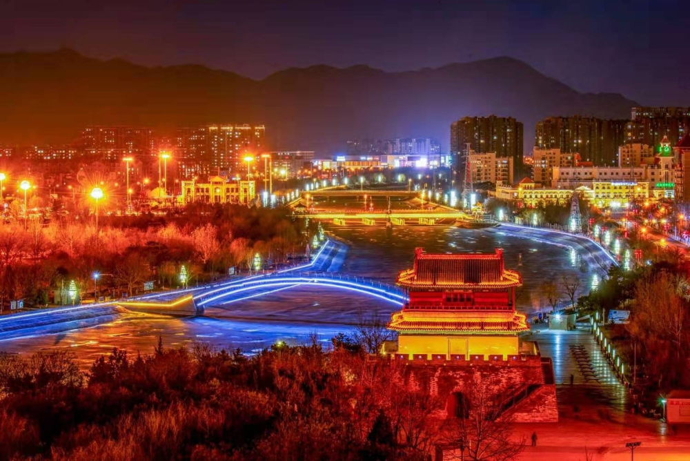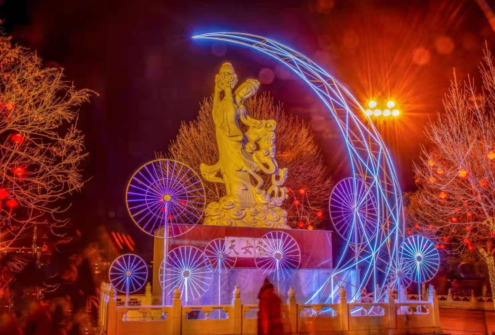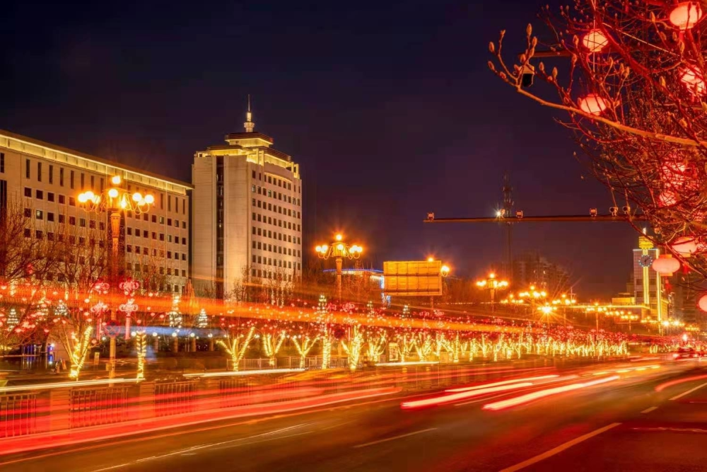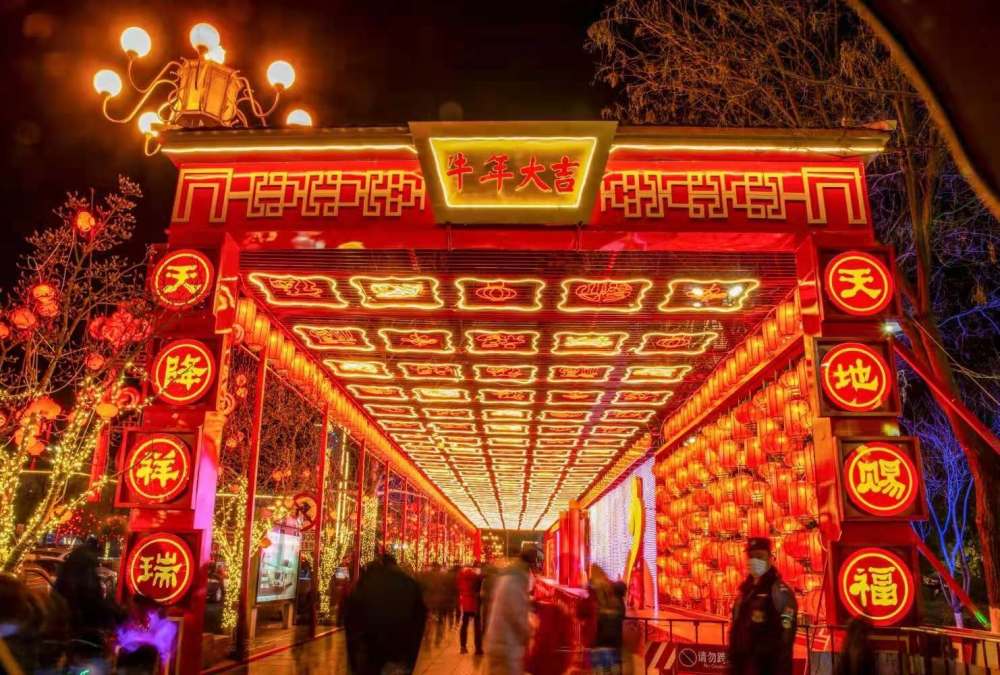 2021年春节,密云街景灯光布置火树银花,流光溢彩。市民们走在街上,脸上洋溢着幸福的笑容。(摄影:王玉祥)