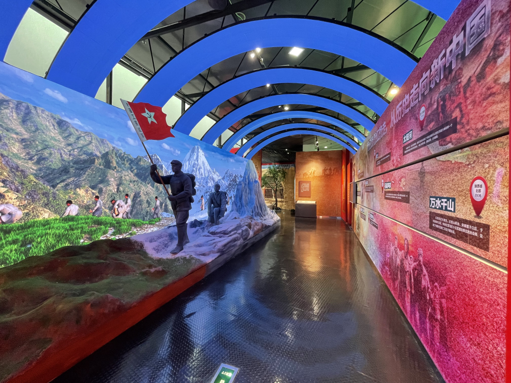 通过虚拟影像和逼真模型,通过情景再现还原红军长征,爬雪山过草地,也是此展的一大亮点。