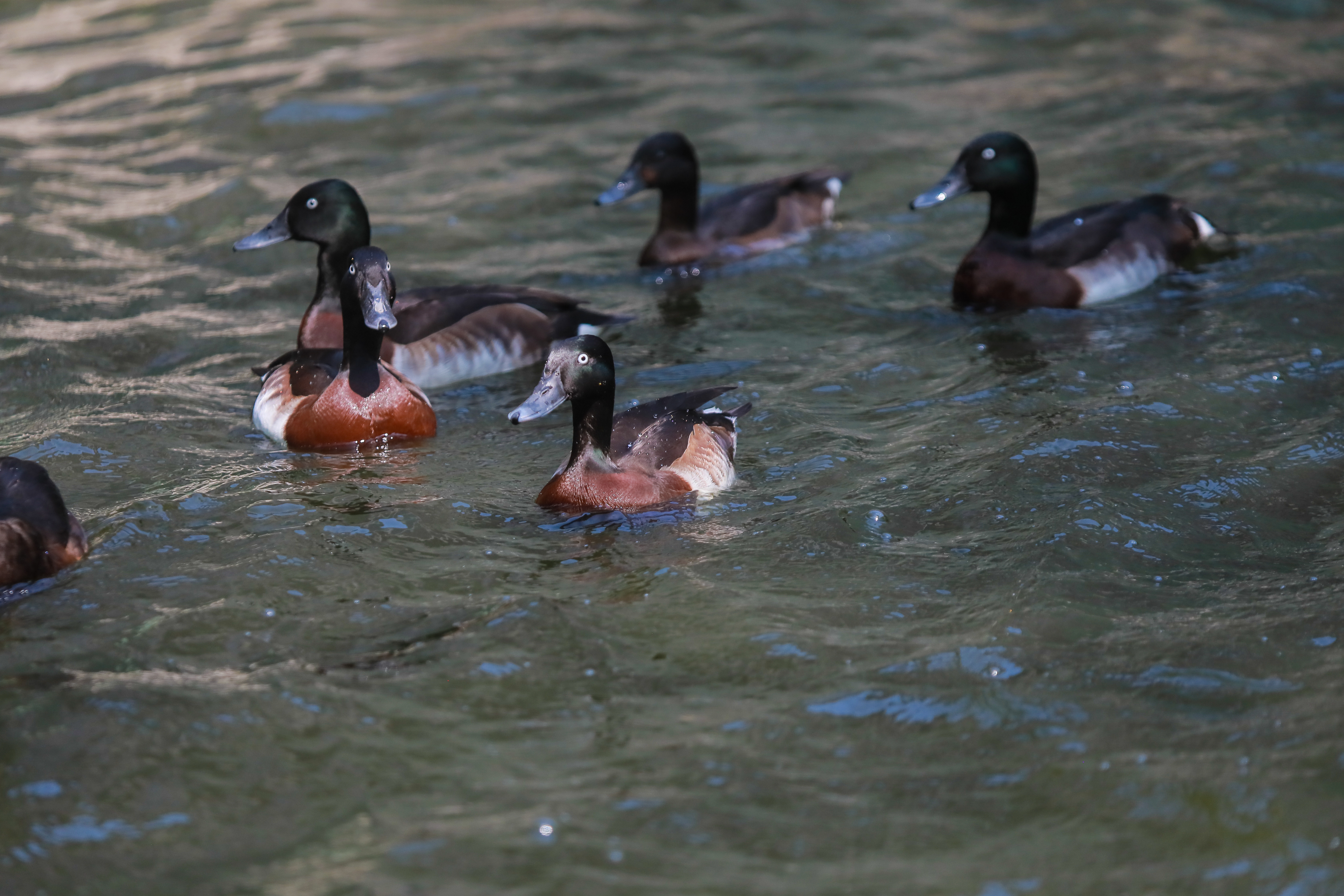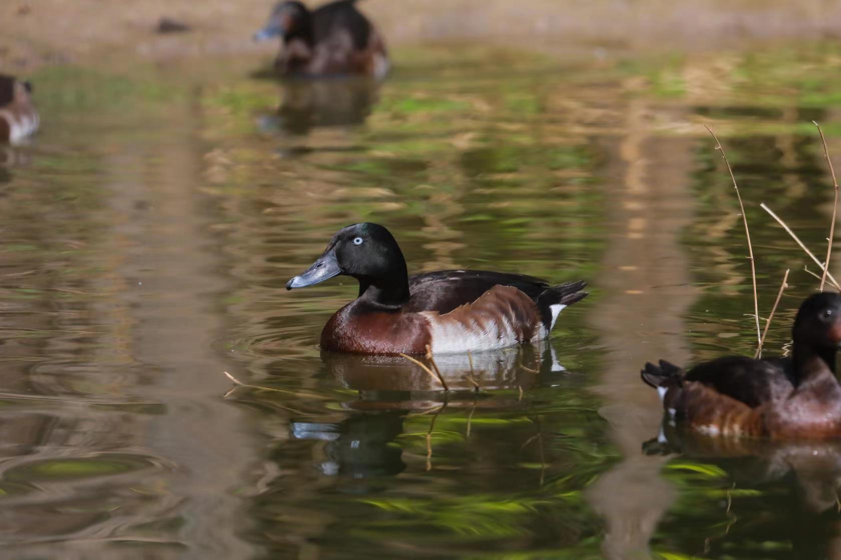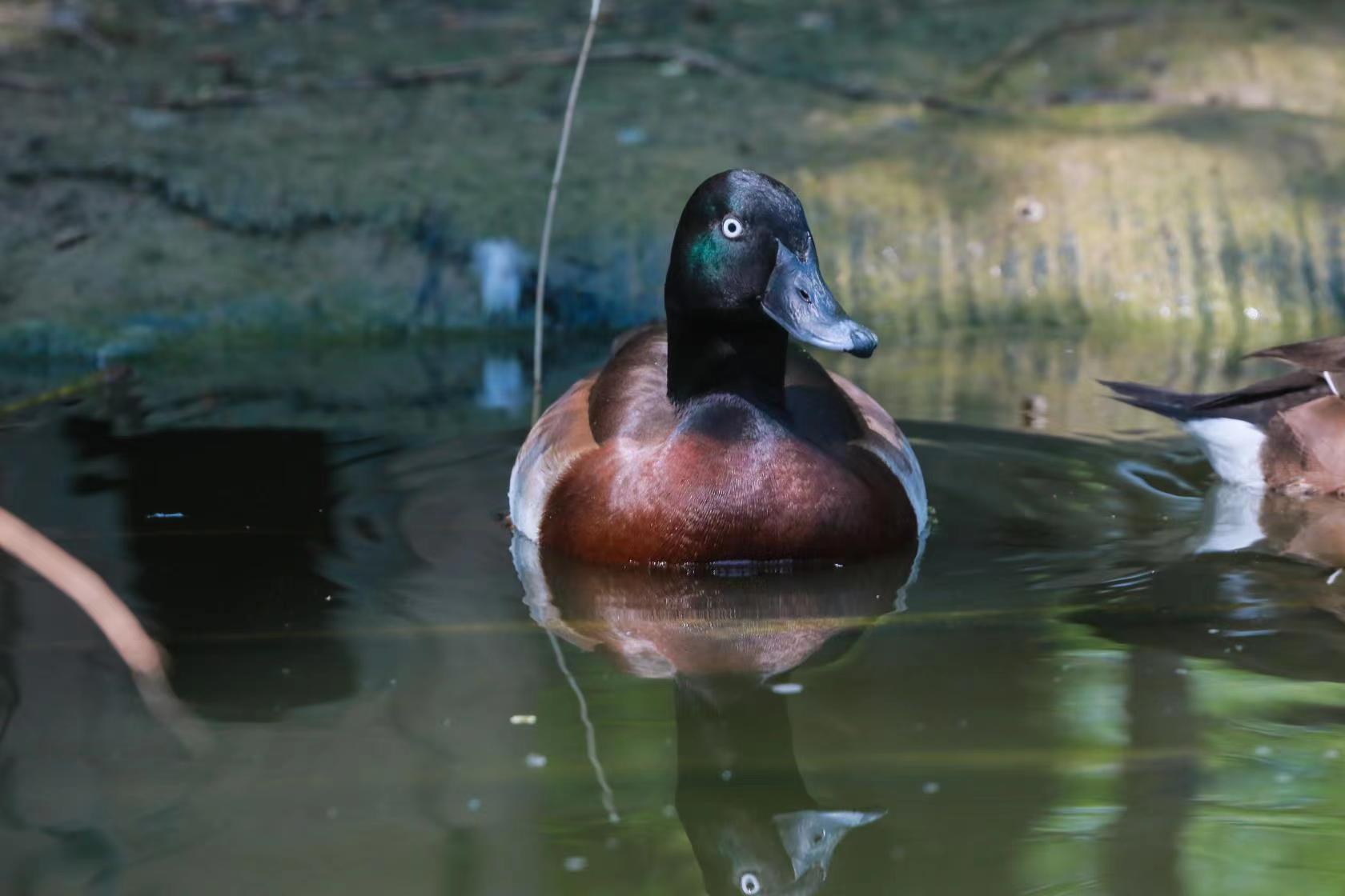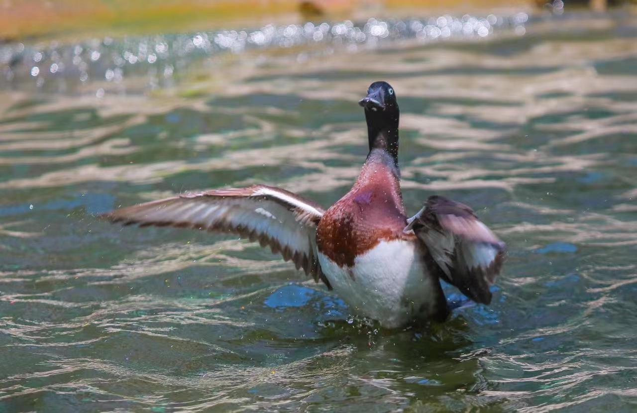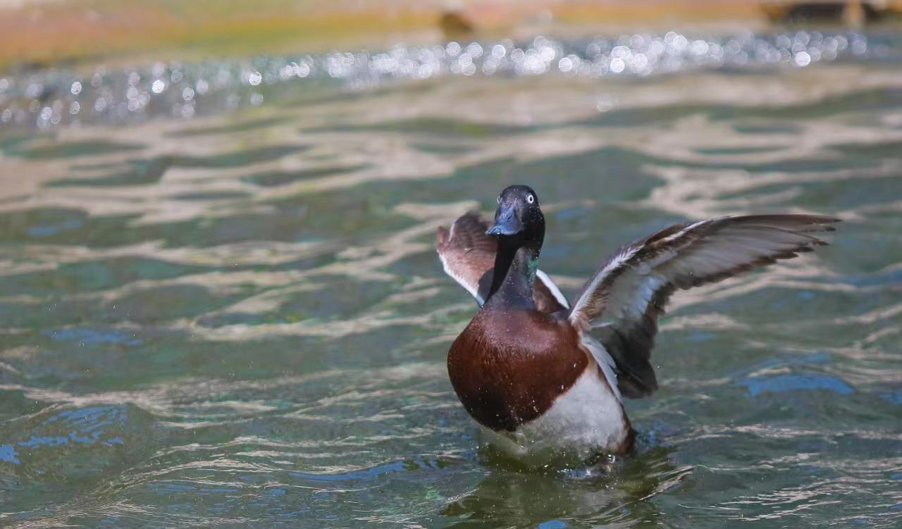 青头潜鸭活跃的身姿在饲养池内十分引人注目。
