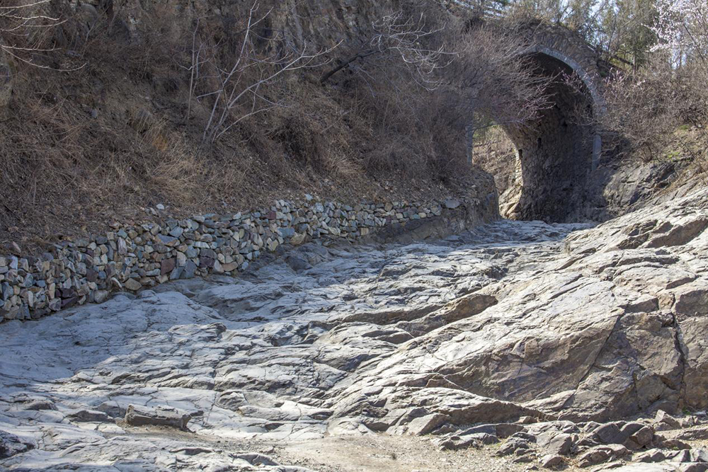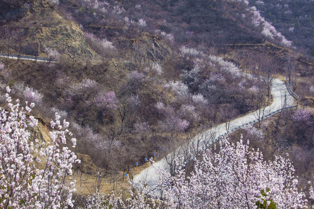 京西古道位于京西门头沟和房山一带的群山之中。始于元、明。日复一日、年复一年拉煤运货的驼马成群结队在山路石道上,久而久之便形成了京城到西郊山区,再远至内蒙、山西的商旅道路。北京春暖花开,驾车行走在京西古道水峪嘴村一段,放眼望去漫山的桃花浸染山谷,给古道增添一抹绚丽春色。