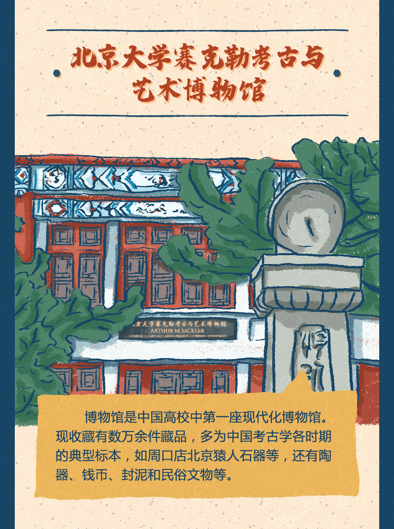 北京大学赛克勒考古与艺术博物馆是中国高校中第一座现代化博物馆。现收藏有数万余件藏品,多为中国考古学各时期的典型标本,如周口店北京猿人石器等,还有陶器、钱币、封泥和民俗文物等。