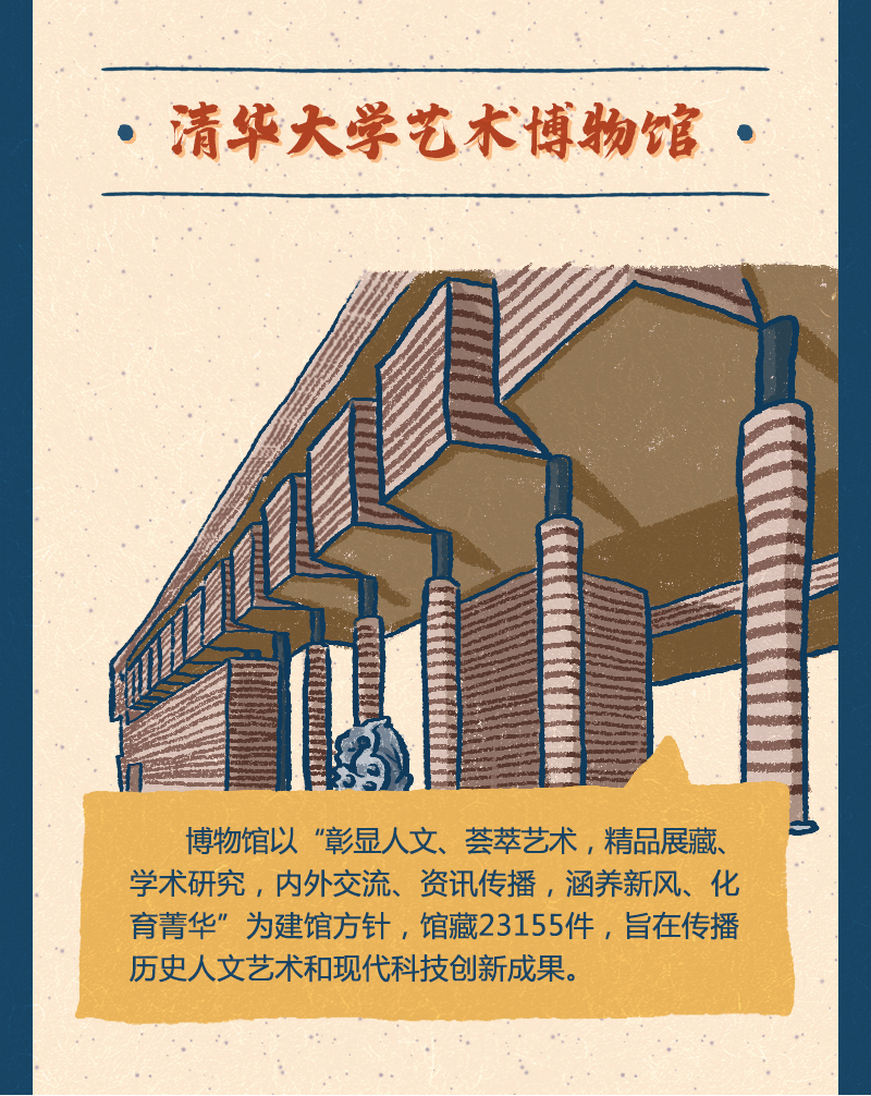 清华大学艺术博物馆以“彰显人文、荟萃艺术,精品展藏、学术研究,内外交流、资讯传播,涵养新风、化育菁华”为建馆方针,馆藏23155件,旨在传播历史人文艺术和现代科技创新成果。