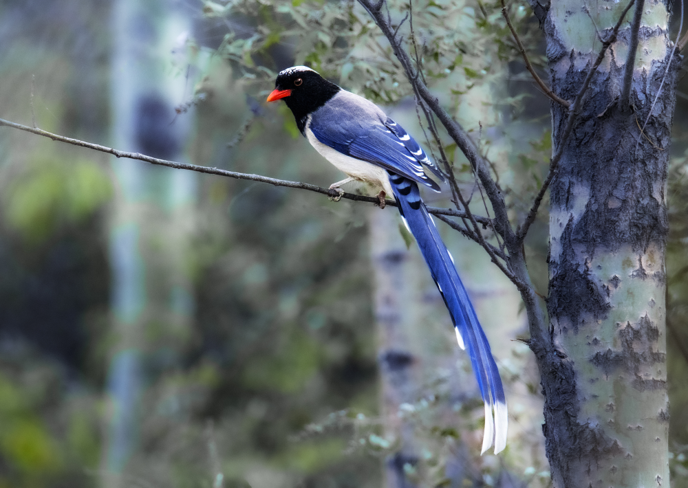羽色艳丽的生态鸟稳稳地站在枯树枝尖,沐浴着夏日的暖阳。(摄影:王家春)