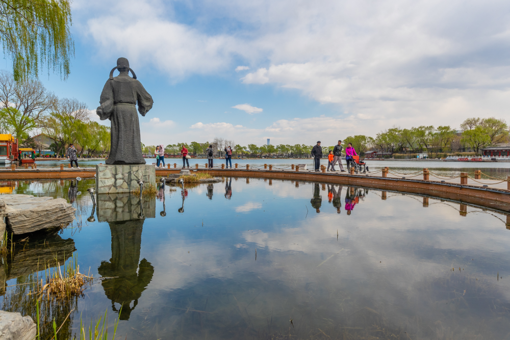 郭守敬纪念馆,身处闹市,南临⻄海,环境幽雅,四季景⾊宜⼈。 ⼀阵阵的南⻛,吹着岸上的垂杨,池中的绿盖,摇成⼀⽚⽆可分析的绿浪,⾹柔柔的 震荡着诗意……