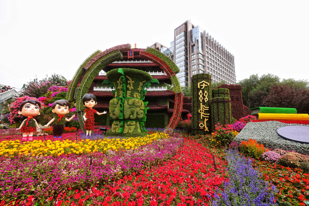 东单东北角的“文明华章”花坛。(摄影:王越)