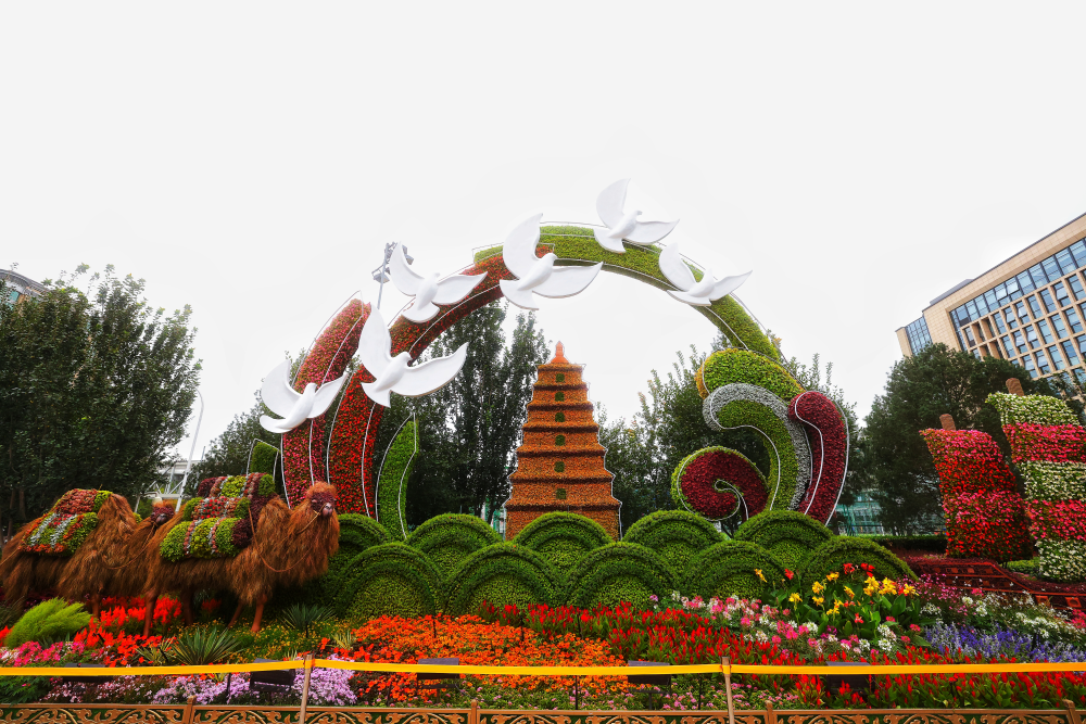 复兴门东北角的“筑梦未来”花坛。(摄影:王越)