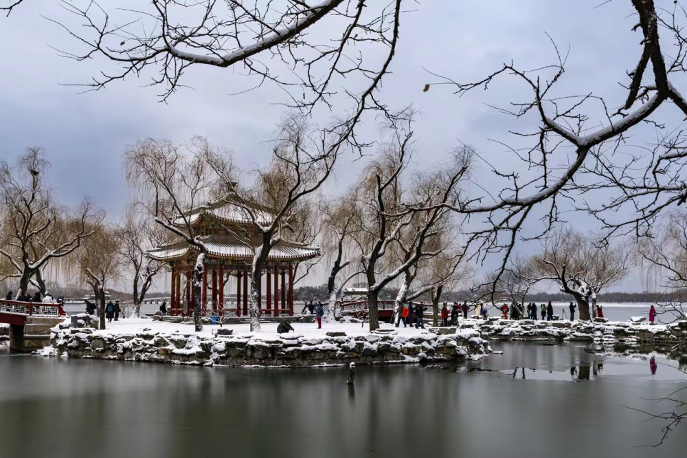 颐和园银装素裹,红墙碧瓦、古建白雪相得益彰。(摄影:树常青)