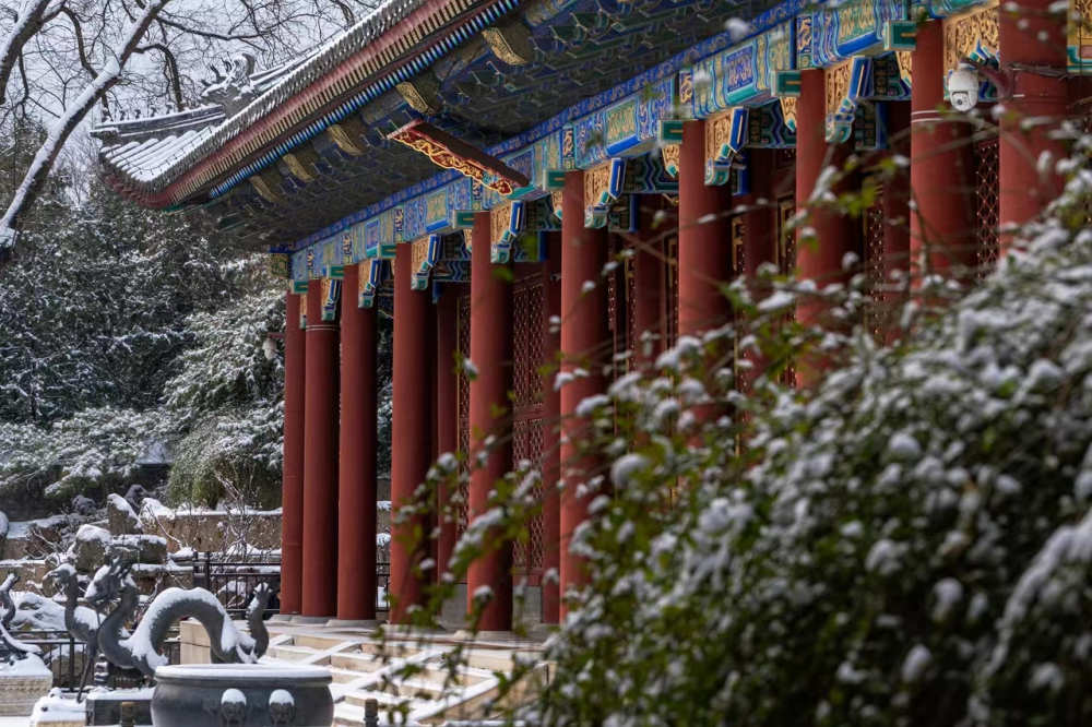 颐和园银装素裹,红墙碧瓦、古建白雪相得益彰。(摄影:于连祥)