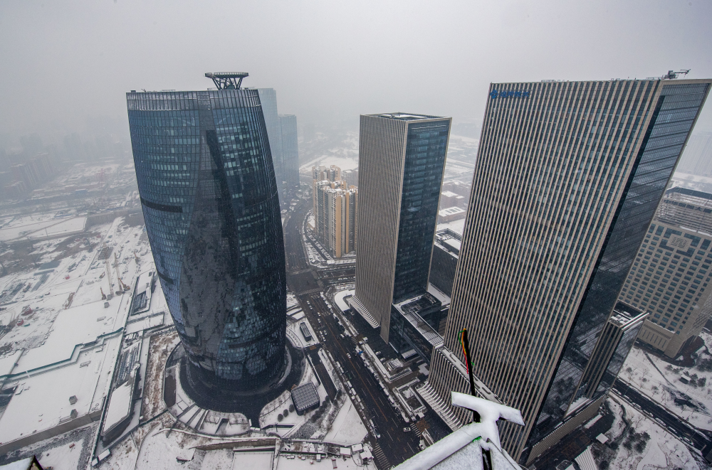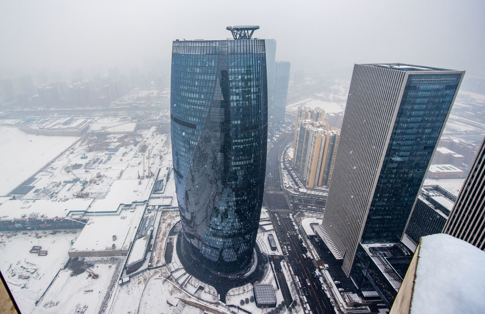 雪中的丽泽金融商务区
