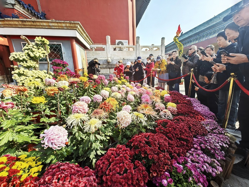 10月28日,天坛公园第44届菊花展在祈年殿景区盛大启幕,绮丽多姿的盛放秋华,正将这已渐近冬的大地妆点得胜似春光。本次菊展以“菊韵四雅”为主题,将古代皇家祭祀场所的恢弘与菊花的清雅完美融合,这场承载着传统园艺与文化的秋日盛宴正缓缓拉开帷幕。