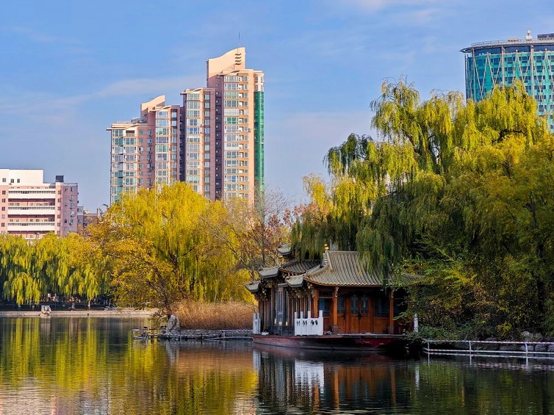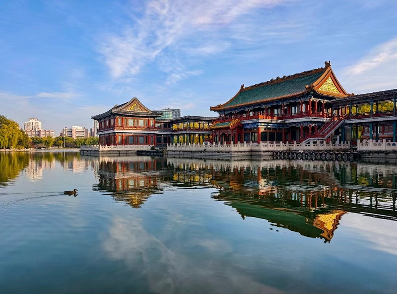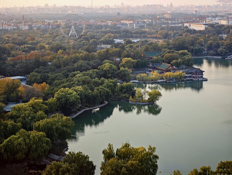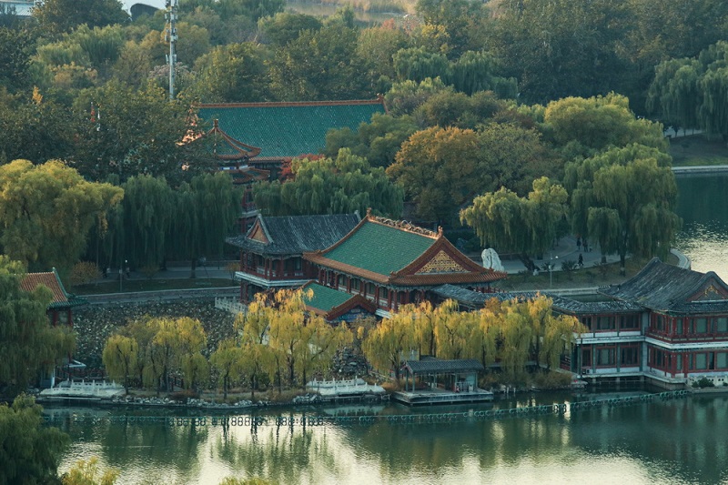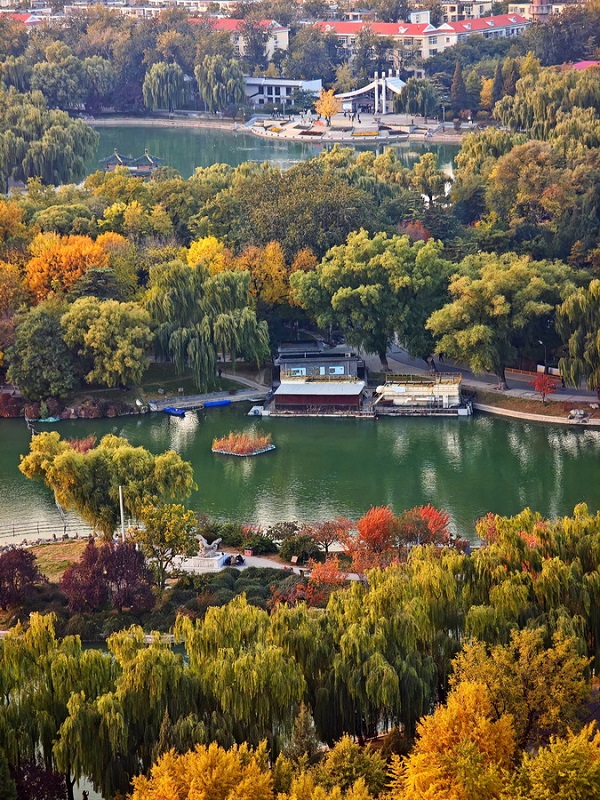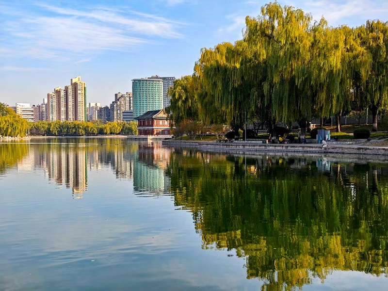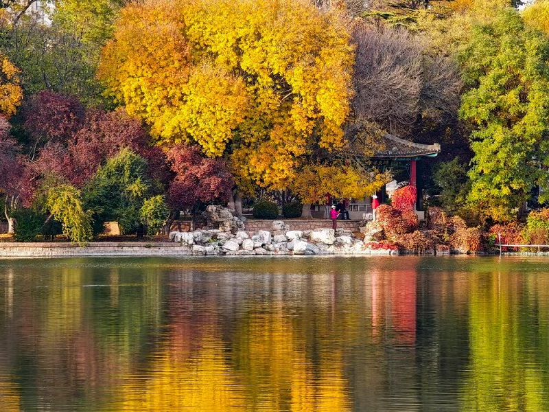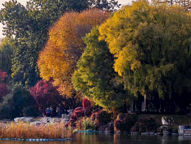 秋天像一位神奇的画师,轻轻一挥笔,便将龙潭湖公园染成了五彩斑斓的世界。湖畔的垂柳,叶子已微微泛黄,在秋风中轻轻摇曳,似是在与湖水低语。远处的枫叶林,红得似火,那热烈的色彩点燃了整个秋日。