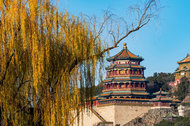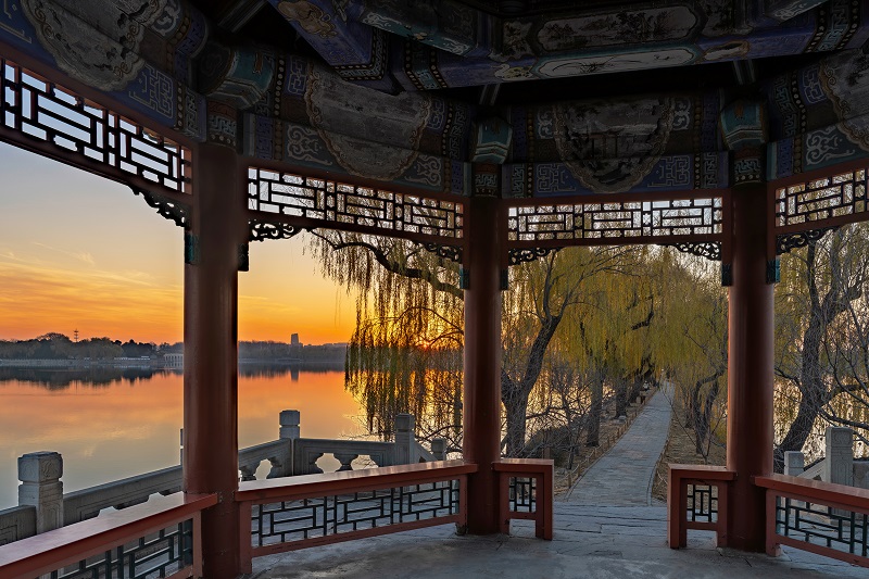 当冬日的夕阳温柔地照在颐和园的每一寸土地上,那原本雄伟壮观的建筑仿佛都被镀上了一层金色的光辉,显得更加庄重。这座承载着千年皇家气韵与历史沧桑的园林,绽放出独属于冬日的华彩。