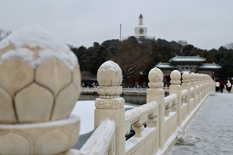 来北海公园赏雪,白雪与白塔更相配。冰与光、雪与塔已勾勒出最动人的冬日画卷。