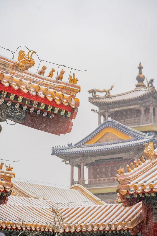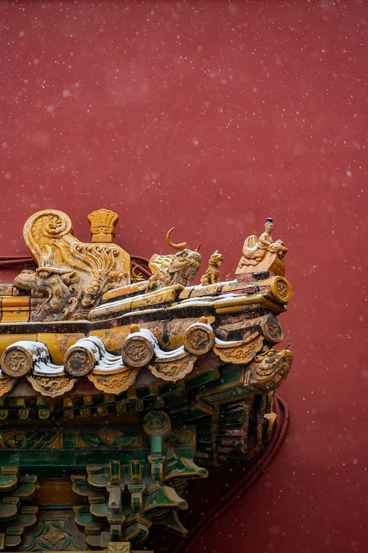 雪后的故宫,褪去喧嚣,以素白之姿静立天地之间。红墙金瓦覆雪如盖,飞檐斗拱凝霜似玉,六百年的皇家气象在冰雪中愈发庄重深沉。当镜头定格,记录的不仅是雪景之美,还是故宫的冬日美学。(摄影:沈欣)