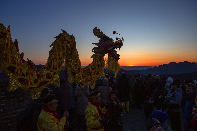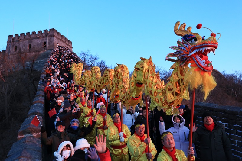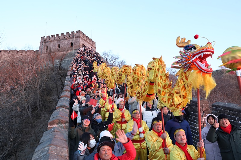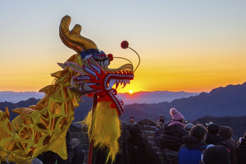 2026年1月1日,第三十二届慕田峪长城元旦观日出活动如期举行,近千名游客登上长城,迎接新年的第一缕曙光。7时35分左右,旭日从连绵山峦间缓缓升起,金色的阳光洒向蜿蜒的长城,游客们纷纷举起手机、相机,定格这一震撼时刻。