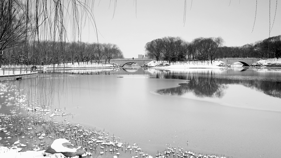 《行宫雪影图》 水天一色柔美,冬景静谧如画。(摄影:崔慧兰)