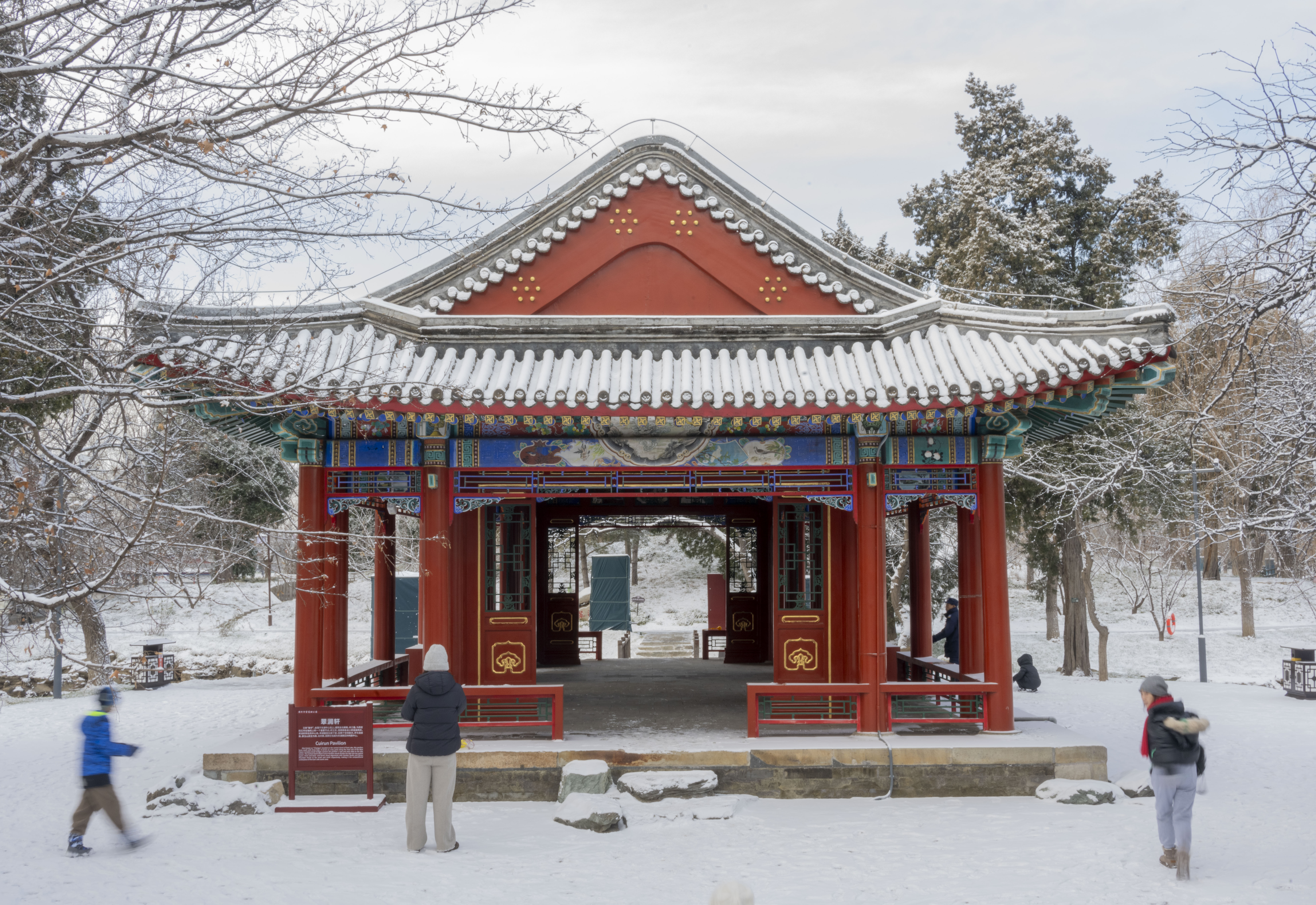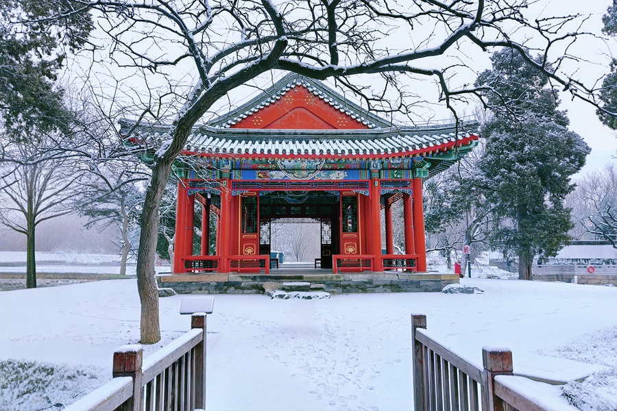 《初雪润行宫》初雪中的团河行宫端庄、静谧。(摄影:崔慧兰)