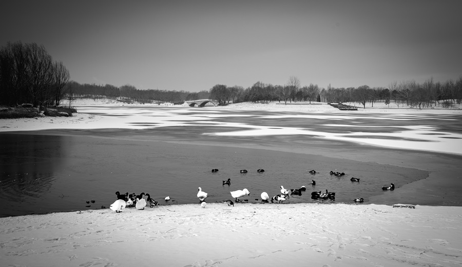 《留在北方的鸟民》留在北方的野鸭给公园带来了生机。(摄影:陈明)