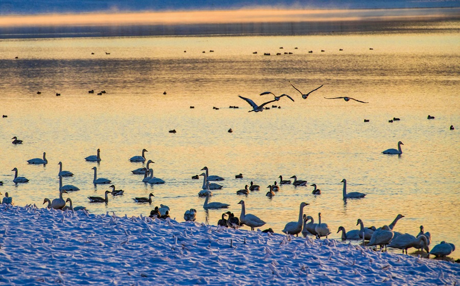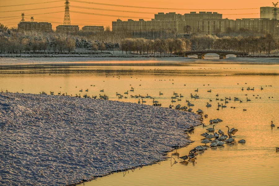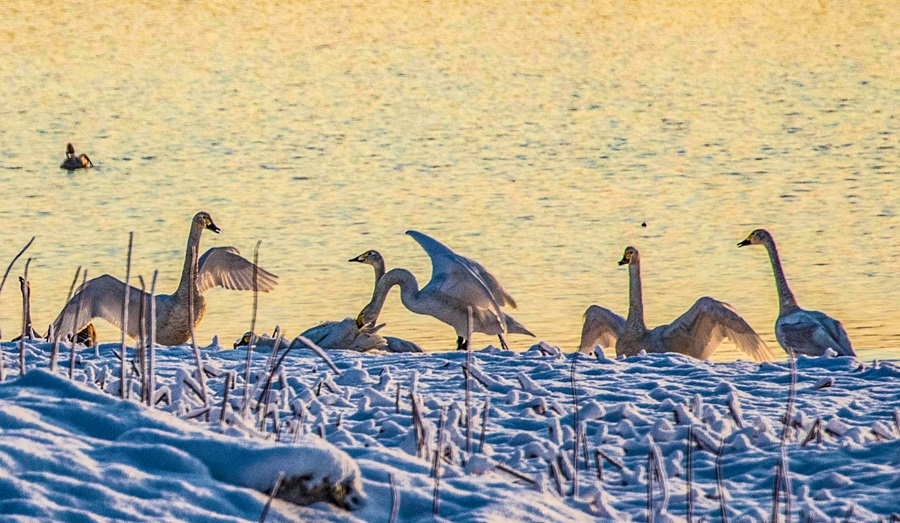 《雪中天鹅》每年南海子成为了大批天鹅北飞歇脚的地方。(摄影:崔广田)