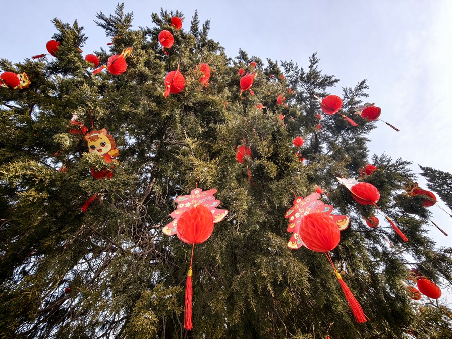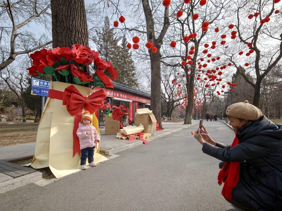 新春将至,龙潭湖公园内张灯结彩,工人们正紧锣密鼓推进第四十届龙潭春节文化庙会布展工作,红灯笼、特色美陈次第亮相,浓浓年味扑面而来。本届庙会以“京韵年·烟火集”为主题,将于2月17日至23日(正月初一至初七)迎客。(摄影:乔健)