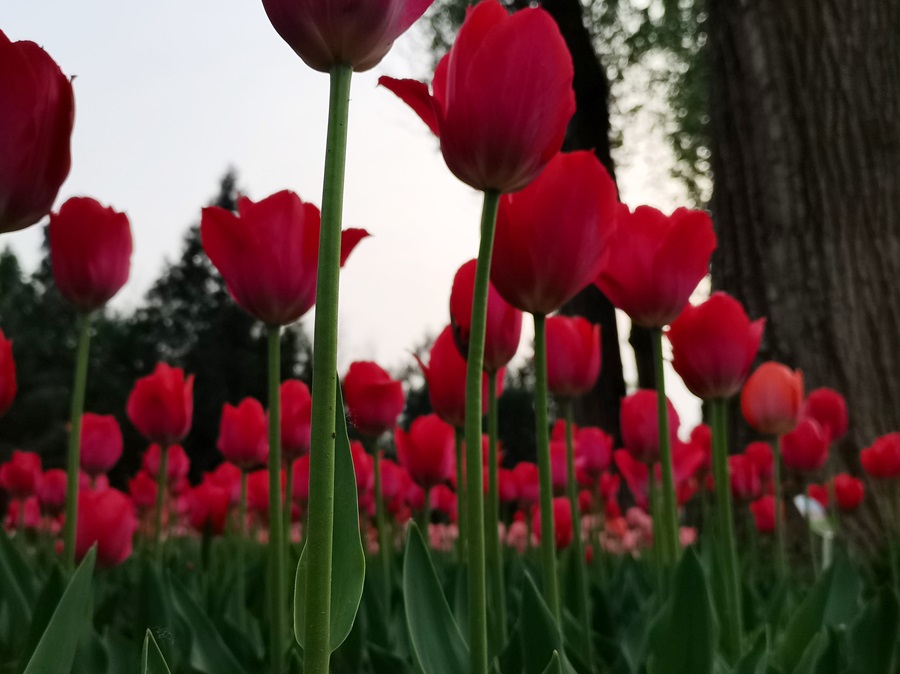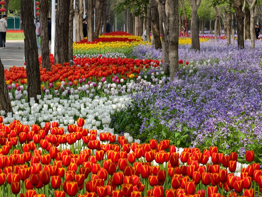 春光织锦。层层叠叠的郁金香铺成绚烂花毯。(摄影:崔慧兰)