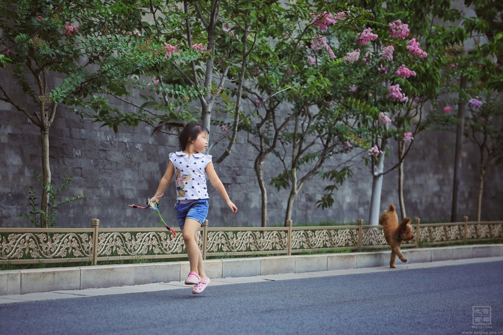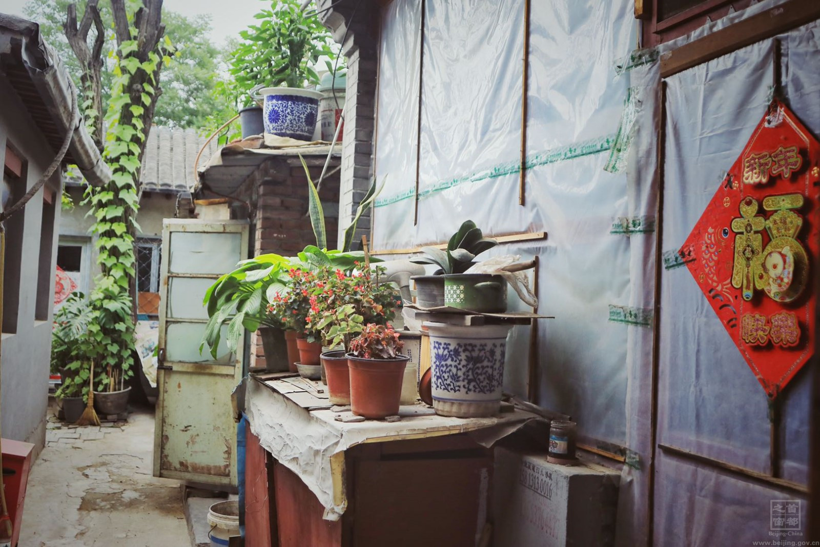 即将进入7月的北京,胡同中盆盆绿植以及街头巷尾的绿树红花使这里充满了夏天的气息。没有了旅游团熙熙攘攘的人群,故宫周边的南池子、北池子大街恢复了老北京原有的风土民情。孩子们在胡同中坐在门墩上玩耍,在角楼下和宠物嬉戏,两人相约竞技滚铁环。