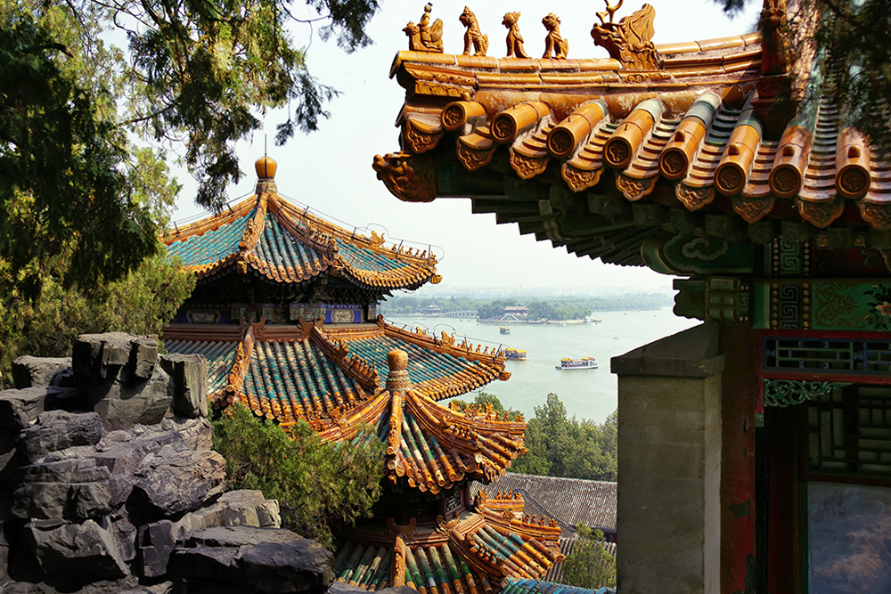 北京颐和园内山桃花等花卉盛开,浓浓的春意吸引市民前来赏花踏春。