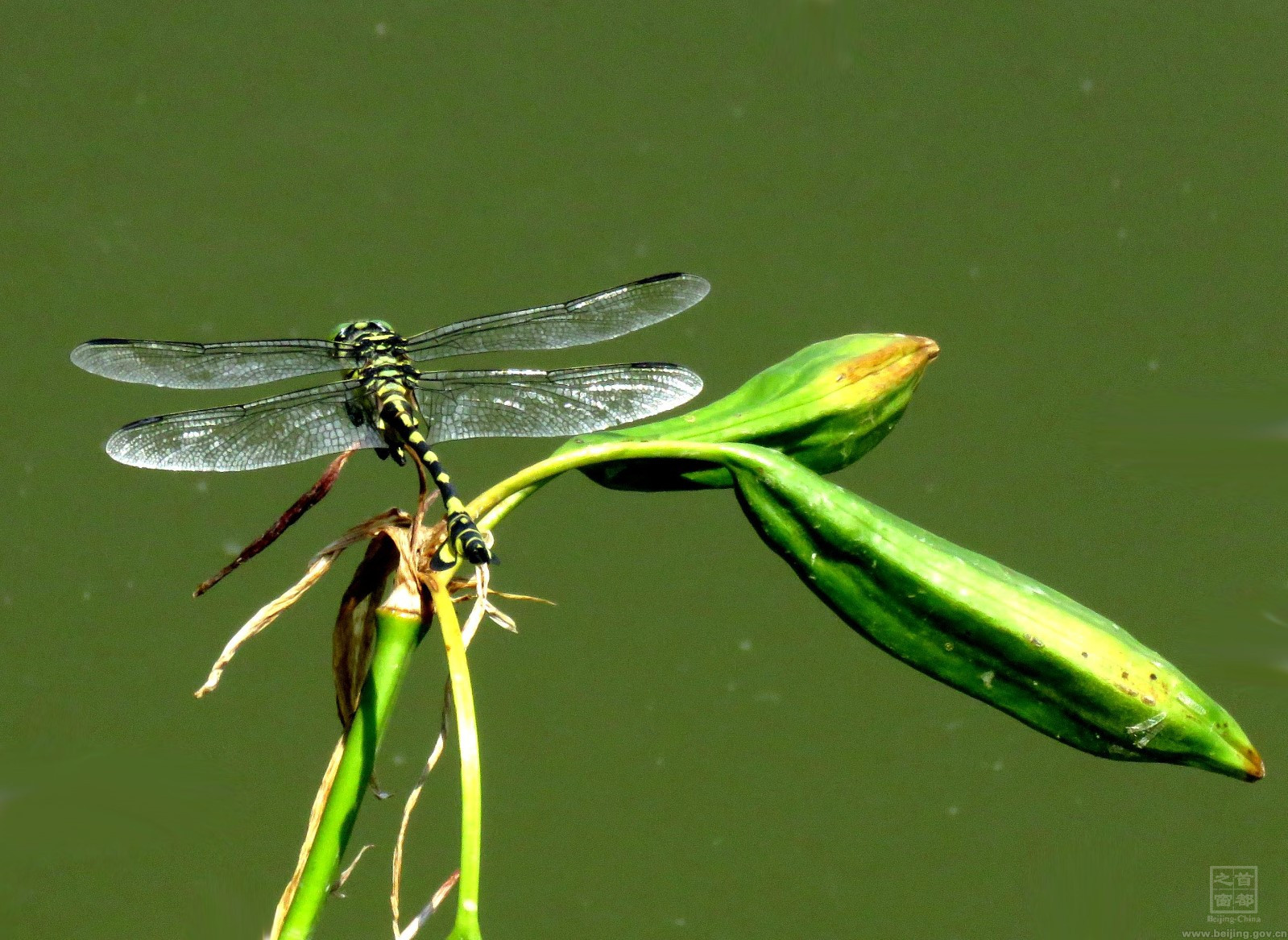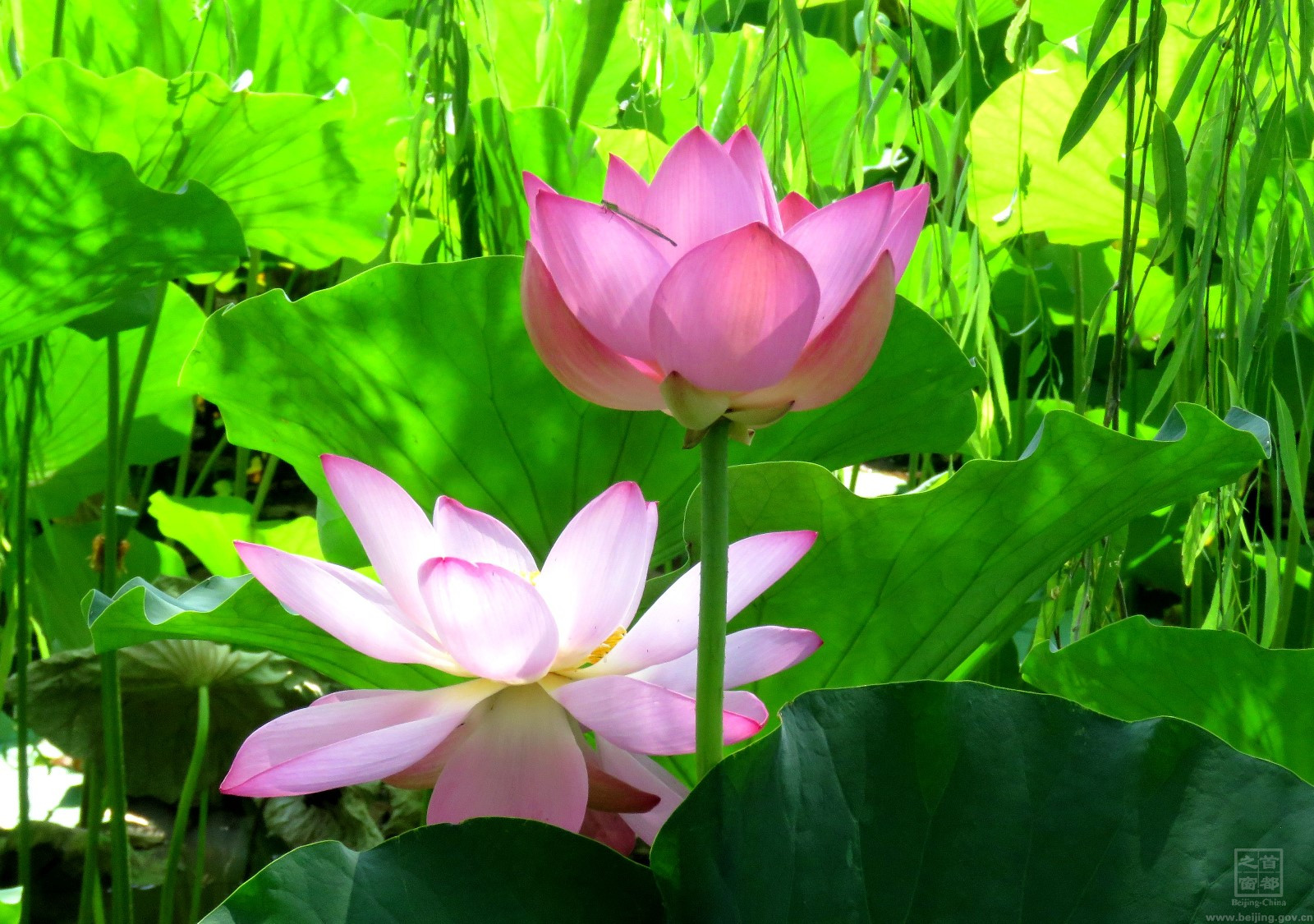 公园夏天赏荷花、蜻蜓。