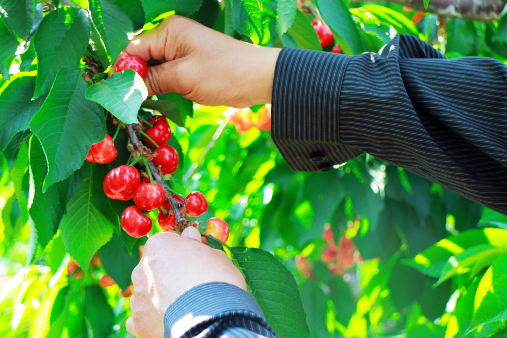 樱桃节上不仅可以品尝到来自海淀12个农业品牌的农产品,还发布了风韵独特的樱桃采摘路线景点。